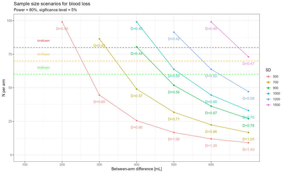 W oparciu o wiedzę na temat tego, co i w jaki sposób będzie analizowane, obliczana jest minimalna liczba pacjentów niezbędna do uzyskania pewnej minimalnej mocy statystycznej (typowo 80% i więcej) bądź precyzji estymacji (określanej na podstawie maksymalnej dopuszczalnej szerokości odpowiedniego przedziału ufności). Proces ten bywa prosty dla prostych badań, ale jego złożoność szybko rośnie z każdą dodatkową komplikacją i w pewnym momencie „podręcznikowe” formuły przestają wystarczać i konieczne są zaawansowane symulacje. Analizy te muszą bowiem uwzględnić: